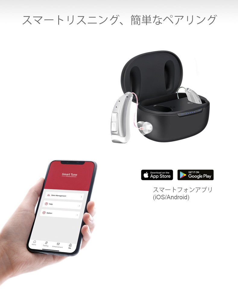 JH-W3TWSブルートゥースBTE補聴器と充電式OTC集音器スマートアプリ